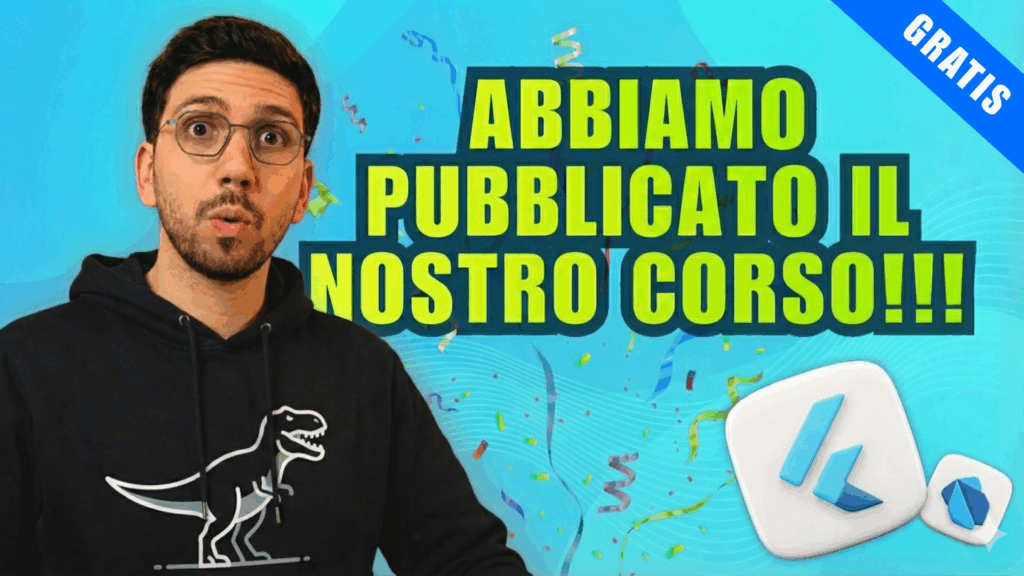 Abbiamo scelto di pubblicare quasi tutto il nostro corso Flutter gratuitamente su YouTube, rendendo accessibili a tutti le registrazioni reali del corso live, dalla Lezione 1 alla Lezione 11.
